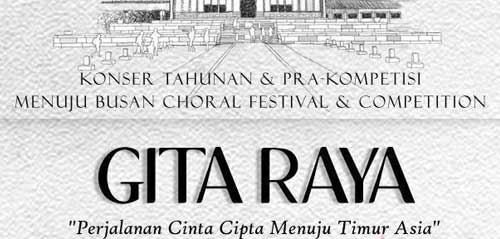 Konser Gita Raya bertema Perjalanan Cinta Cipta Menuju Timur Asia dengan Dirigen Azis Novtian Lubis merupakan Konser Tahunan dan Pra Kompetisi menuju Busan Choral Festival & Competition yang akan menampilkan lagu-lagu terpopuler dari grup band dunia.