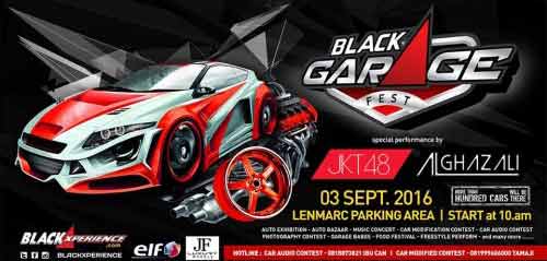 Black Garage Fest 2016 akan diselenggarakan diawal bulan September dengan menghadirkan rangkaian acara antara lain Auto Exhibition, Auto bazaar, Music Concert, Car Modification Contest, Car Audio Contest, Photography Contest, Garage Babes, Foodfestival dan Freestyle Perform.