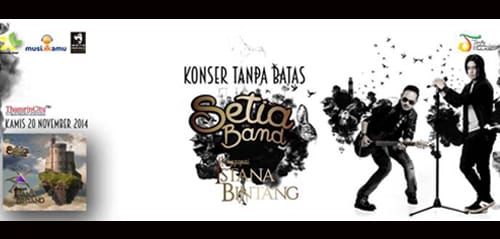 Trinity Optima Production bekerjasama dengan XL, Musik Kamu, Bens Radio dan Thamrin City pada tanggal 20 November 2014 akan mengadakan “KONSER TANPA BATAS” – SETIA Band yang diselenggarakan di Atrium Mezzanin, Thamrin City, Jakarta Pusat.