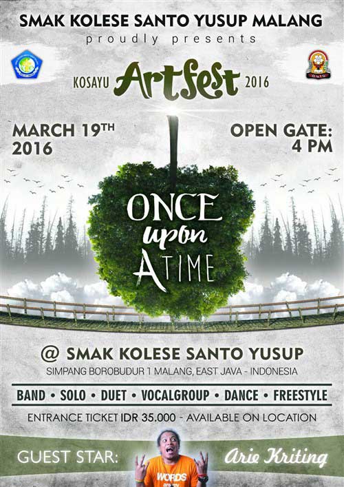 Kosayu Art Fest 2016 “Once Upon A Time” acara menarik persembahan dari SMAK Kolese Santo Yusup, Malang akan segera digelar.