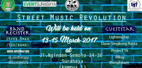 Music Campus 2K17 bertajuk Street Music Revolution merupakan acara hiburan spesial persembahan dari UKM BAND STIE PERBANAS. Kamu yang punya band bisa tampil juga di acara ini.