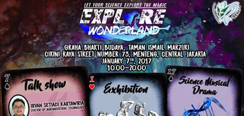 Explore Wonderland adalah acara hiburan dan pameran yang diselenggarakan pada hari Sabtu, tanggal 7 Januari 2017, jam 10.00 -20.00 WIB, bertempat di Graha Bhakti Budaya, Taman Ismail Marzuki, Jakarta.